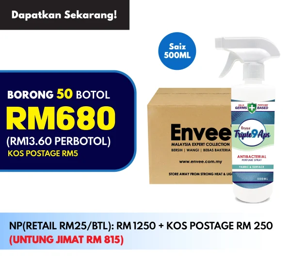 Get 1 Bottle Triple9 Aps Antibacterial Perfume Spray 500ml worth RM25 for FREE on your 1st Order!