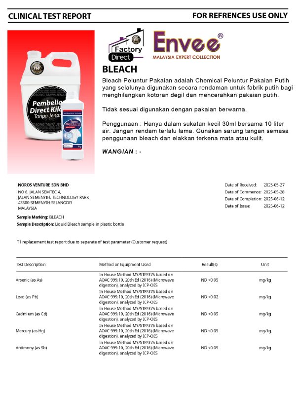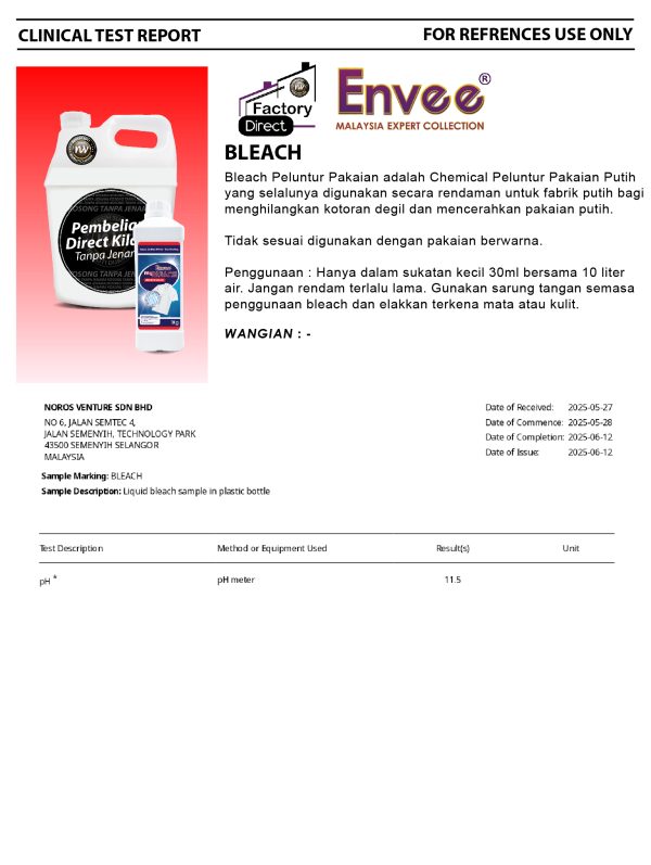 ENVEE MyBleach Clothes Bleach is a Chemical White Clothes Bleach that is often used as a soak for white fabrics to remove stubborn stains and brighten white clothes.